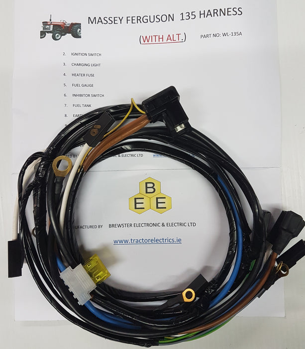 Tractor loom for Massey Ferguson 135/148 series with alternator fitting